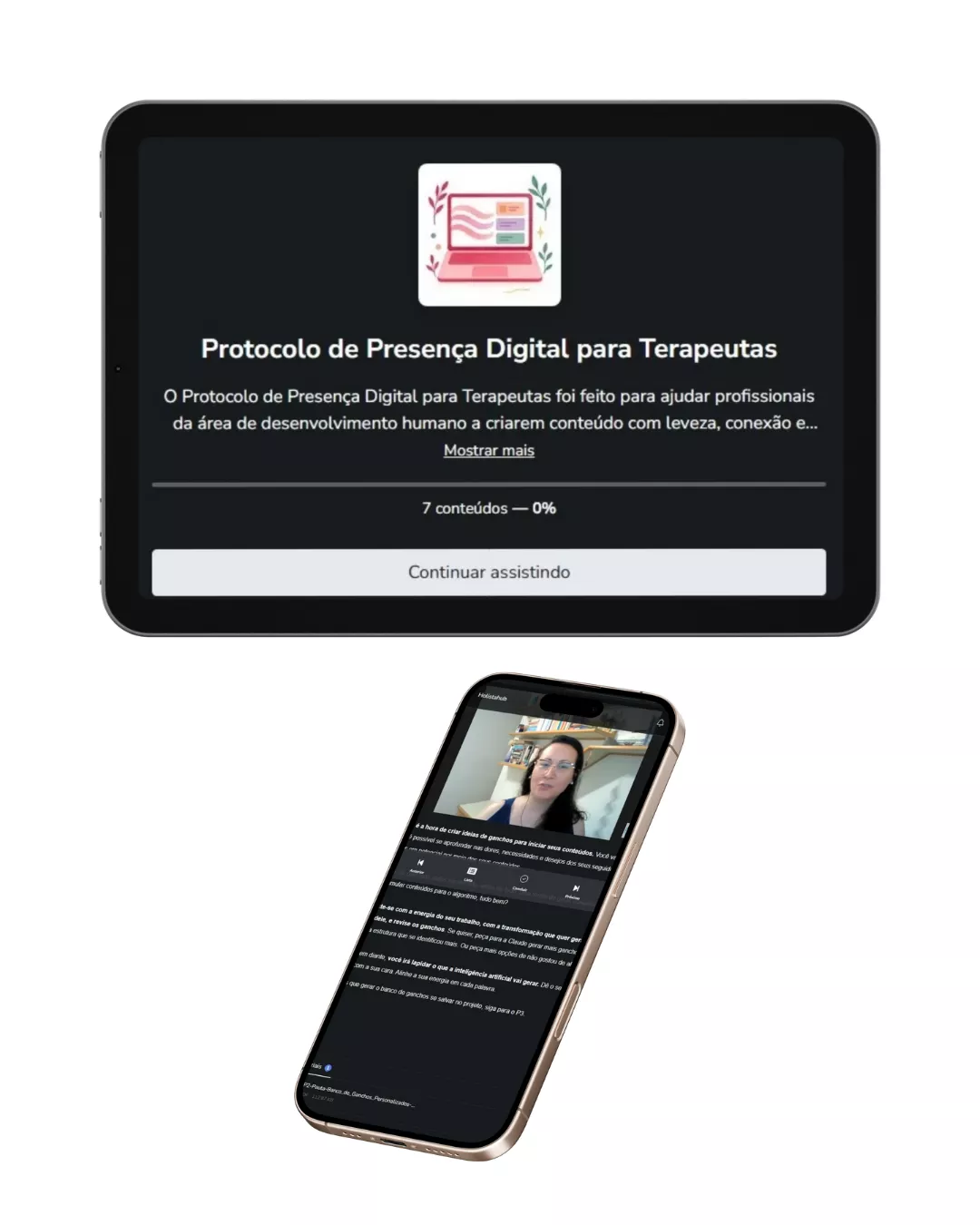 O Protocolo de Presença Digital para Terapeutas é um método prático que te ensina a criar conteúdos profundos e alinhados com a sua essência, usando inteligência artificial de forma consciente.